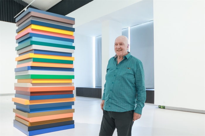 当80岁的肖恩·斯库利(Sean Scully)站在四川音乐学院美术馆的展厅中央,凝视着自己那些如“混凝土般厚重”的色块与“呼吸般颤动”的条纹时,这位被哲学家阿瑟·丹托誉为“我们这个时代最重要的油画大师之一”的艺术家轻声说道:“绘画是沉默的诗,而诗是流动的绘画。”