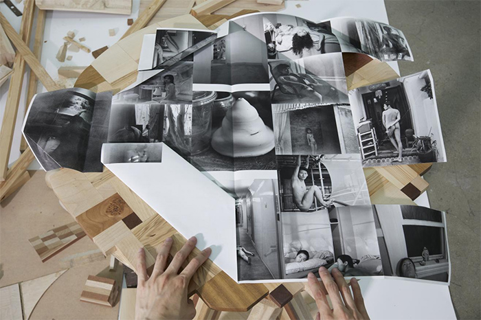 她在这些木块之间嵌入了三本艺术家书籍——摄影、图像与文字。它们仿佛时间的“窗口”,观众必须亲手翻阅。Installation-as-book, book-as-body:她的许多雕塑性动作,如同文本或日记一般展开,阅读与观看本身成为一场身体的回返。